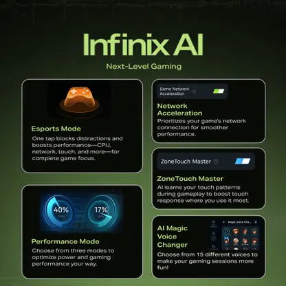 The GT 30 5G+ delivers a playful yet powerful AI experience through One-Tap Infinix AI, featuring creative tools like AI-generated wallpapers from text or images, AI Extender, which smartly expands images beyond their original frame and XBoost AI features that elevate your gaming experience. Enhancing the experience further is Folax, the AI voice assistant that can check the weather, launch apps, or simply chat with you. Additional features such as Circle to Search, Call Summary, and AI Writing Assistant take your productivity and convenience to the next level.